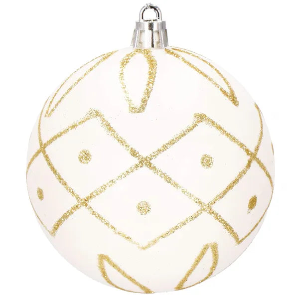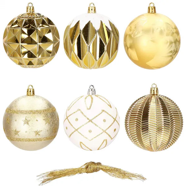 Törhetetlen karácsonyi műanyag gömb díszek 8 cm, 16 db, arany–fehér