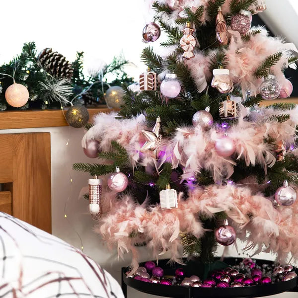 Szívesen öltöztetnéd a fenyődet elegáns rózsaszín árnyalatokba? A 33 darabos Springos törhetetlen karácsonyfadísz készletben mindent megtalálsz, amire szükséged lehet a harmonikus és biztonságos dekorációhoz – a matt, fényes és csillámos gömböktől kezdve a karcsú jégcsapokon át egészen a látványos csillagcsúcsig.