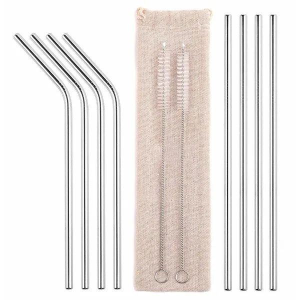 - 10 részes készlet: 4 egyenes és 4 hajlított szívószál, praktikus tisztítókefe, valamint zárható, természetes vászonzsák.