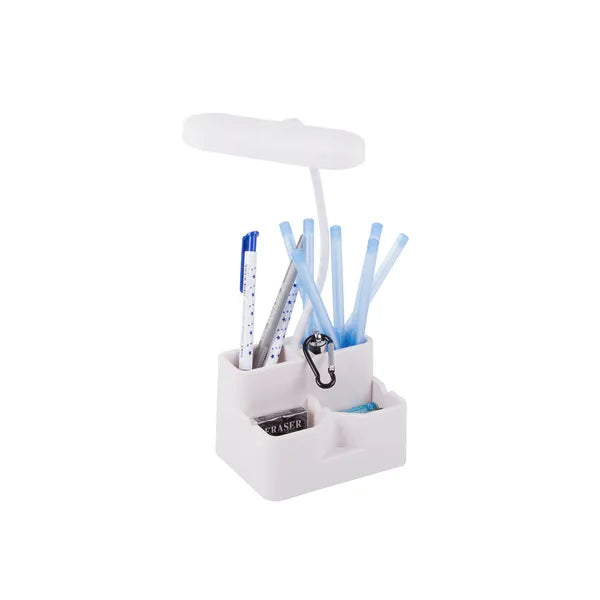 A 24 energiatakarékos LED-ből álló fényforrás kristálytiszta, egyenletes megvilágítást nyújt, így hosszú munka vagy tanulás közben sem fárad el a szem. A beépített négyrekeszes írószertartóval minden toll, ceruza és jegyzet kéznél lesz, az állítható kar pedig pontosan oda irányítja a fényt, ahol szükség van rá.