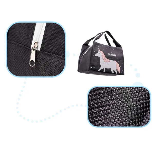 Vidd magaddal kedvenc ételedet bárhová az unikornisos hőszigetelt ebédtáskával! A belső alumíniumfólia segít hosszabb ideig megőrizni az ételek hőmérsékletét és frissességét, legyen szó meleg levesről vagy hideg gyümölcsről.