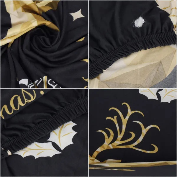 Tedd igazán különlegessé az ünnepi asztalt egyetlen mozdulattal! A rugalmas, spandex székhuzat fekete-arany karácsonyi mintája elegáns megjelenést kölcsönöz, miközben megóvja a szék kárpitját a mindennapi szennyeződésektől.
