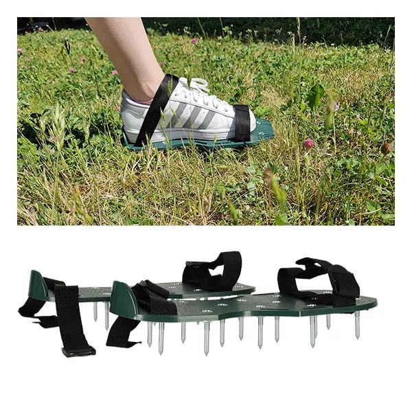 A dús, smaragdzöld pázsit titka a rendszeres talajszellőztetés. A tüskés aerátor cipővel egyszerűen, plusz eszközök nélkül juttathatsz oxigént, vizet és tápanyagokat a gyökerekhez: csak csatold a talpaidra a szandálszerű talplemezeket, és sétálj végig a gyepen.