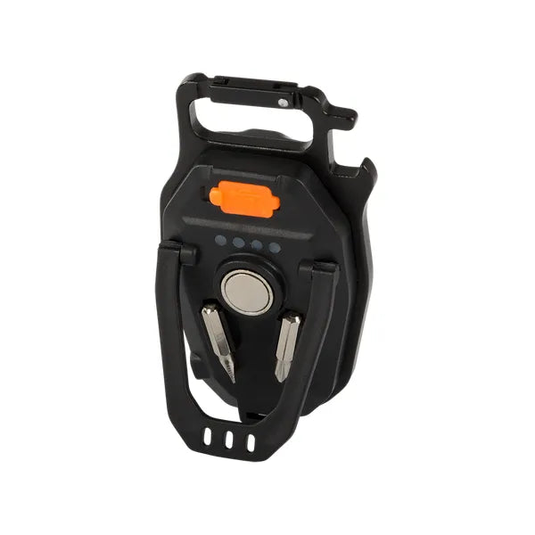 - Erős hátlapi mágnes fémfelületre tapasztva két szabad kezet biztosít szerelés vagy kempingezés közben.