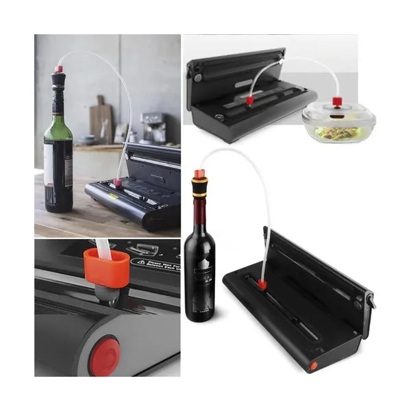 - Gazdag tartozékkészlet: 9 fóliatekercs, 5 vákuumtasak, palackdugó, vákuumcső, vágókés és hálózati kábel – azonnal használható.
