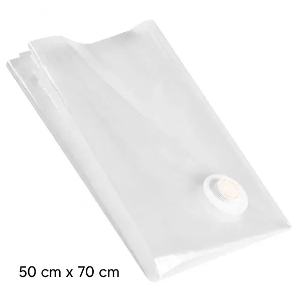 Szabadíts fel értékes helyet a szekrényben és védd kedvenc ruháidat, ágyneműidet a nedvesség, por és atkák ellen ezzel az 50×70 cm-es, átlátszó vákuumos tárolózsákkal. A zsákból egyszerűen kiszívható a levegő porszívóval vagy kézi pumpával, így a tartalom akár 75 %-kal kisebb helyet foglal.