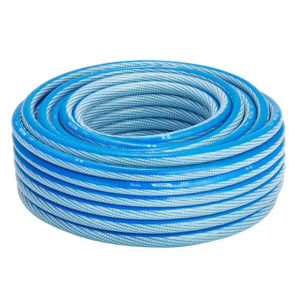 A Vartco Hoppy 1/2″, 20 m-es kerti tömlő hatrétegű felépítése extrém tartósságot és rugalmasságot kínál, így a locsolás minden eddiginél kényelmesebb. A TFS (Torsion-Free System) kereszt- és trikótfonású megerősítés megakadályozza a csavarodást, míg a vastagabb poliészterszálak a 36 bar-os robbanási nyomással szemben is védelmet adnak.