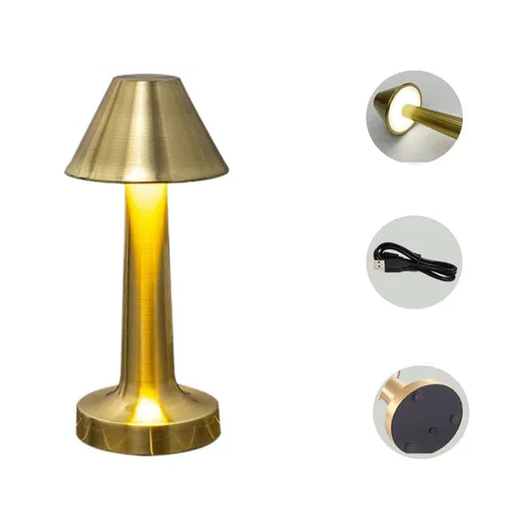 Vezeték nélküli érintéses asztali éjjeli LED lámpa, arany, 3 fényárnyalat, USB-C