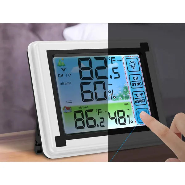 Szerezzen pontos, valós idejű információt a beltéri és kültéri hőmérsékletről, valamint a levegő páratartalmáról ezzel a modern, vezeték nélküli időjárás-állomással. A színes LCD érintőkijelzőn jól olvashatóak az adatok, a minimalista design pedig bármely helyiségbe illik.