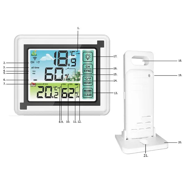 - Vezeték nélküli adatátvitel 60 m-ig – a mellékelt kültéri szenzor stabil 433 MHz-es kapcsolattal továbbítja a méréseket.