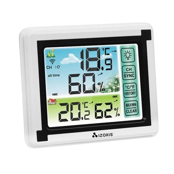 Beépített beltéri és külső, vezeték nélküli szenzorral ellátott időjárás-állomás, amely valós időben mutatja a hőmérsékletet és a páratartalmat. Színes, háttérvilágítással rendelkező kijelzője és érintőgombjai megkönnyítik a használatot.