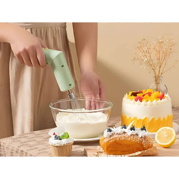 Vezeték nélküli USB-tölthető elektromos habverő, 3 fokozat, 2 fej