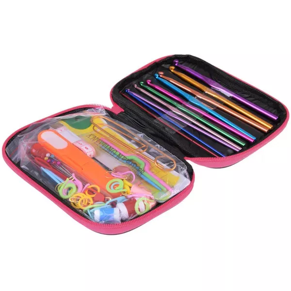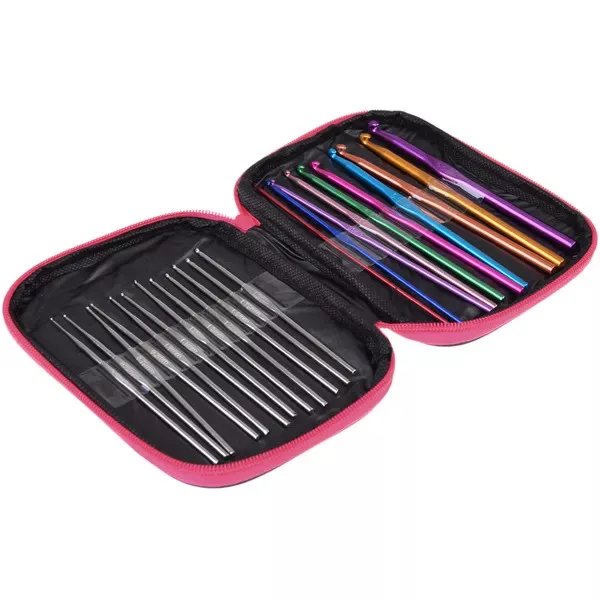 - 22 db fém horgolótű (0,6–6,5 mm)