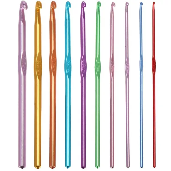 - 22 részes szett: 10 élénk színű alumínium tű 2–6,5 mm, 12 rozsdamentes acél csipke-tű 0,6–1,9 mm.