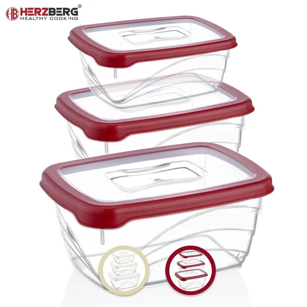 A háromrészes, extra mély ételtároló doboz szett ideális megoldás friss ételek és maradékok biztonságos tárolásához. A vibráló piros, szilikon tömítéssel ellátott fedelek 100%-ban lég- és cseppmentesen zárnak, így az alapanyagok hosszabb ideig megőrzik ízüket és állagukat.