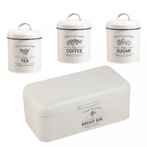 - Teljes szett: kenyértartó + kávé-, tea- és cukortartó, hogy minden kéznél legyen és rendezetten álljon.