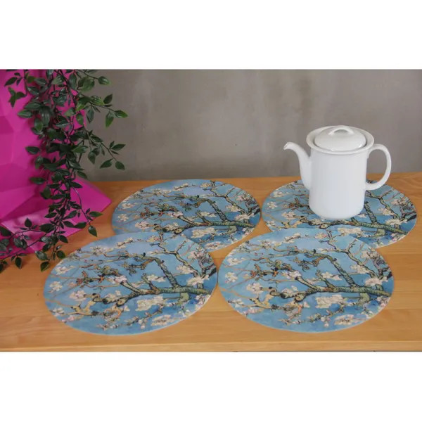 Az Almond mintás, 33 cm átmérőjű kerek filc alátétek stílusosan védik étkező- vagy dohányzóasztalodat a karcolásoktól, hőtől és kifröccsenő italoktól. A sűrűn préselt, 3 mm-es poliészter filc könnyű, mégis tartós, ráadásul a HD nyomtatásnak köszönhetően a minta sokáig élénk marad.