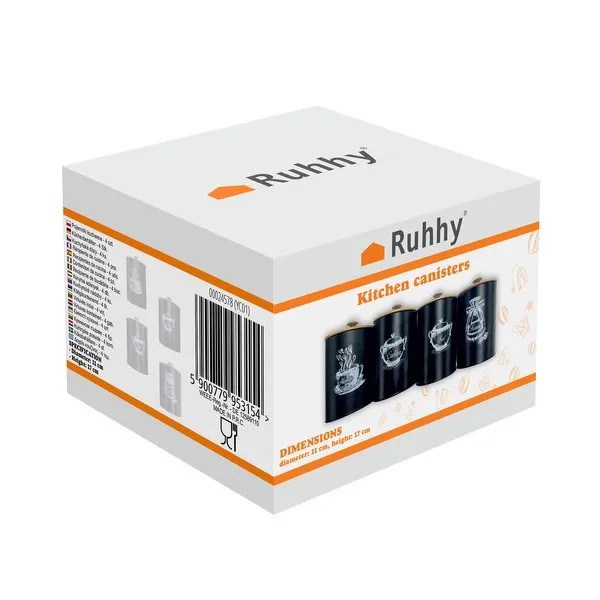 Szeretnéd rendszerezni a szárazárut, kávét vagy nassolnivalókat? A 4 darabos Ruhhy ételtároló készlet modern, matt fekete testtel és természetes bambusz fedéllel elegáns kiegészítője a konyhának. A 1,5 literes kapacitású dobozok karbonszálas acélból készülnek, ónbevonattal a tartósságért, a fedélbe épített szilikon tömítés pedig megakadályozza a nedvesség és a levegő bejutását.