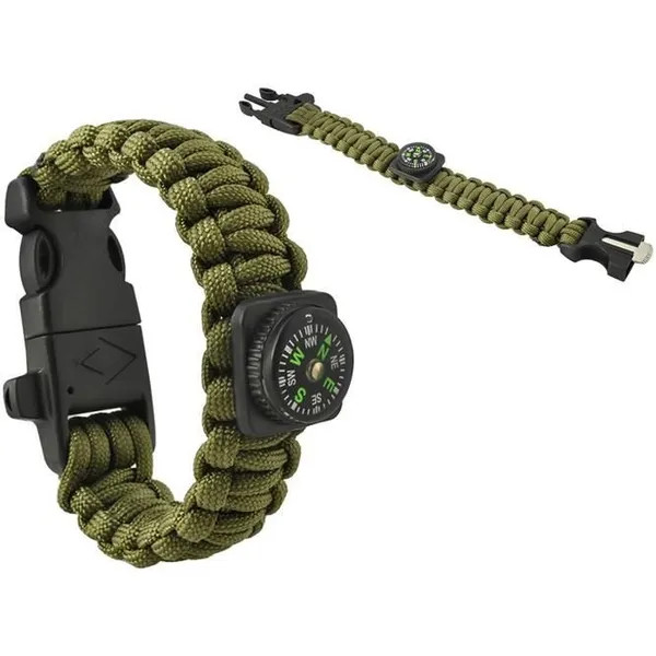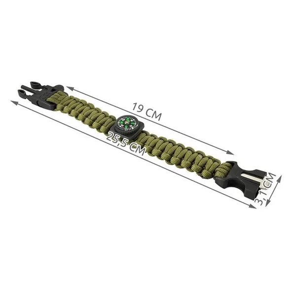 A szabadban töltött idő során a biztonság és az önellátás elsődleges. A zöld, 5 az 1-ben paracord túlélő karkötő kompakt, mégis sokoldalú segítőtárs, amely rendkívül kis súlyának köszönhetően nem jelent plusz terhet, mégis kritikus helyzetekben nélkülözhetetlen eszközöket biztosít.