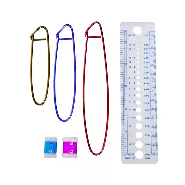 - Tartós anyagok: könnyű alumínium tűk, rozsdamentes fém kiegészítők, rugalmas műanyag szemjelölők.