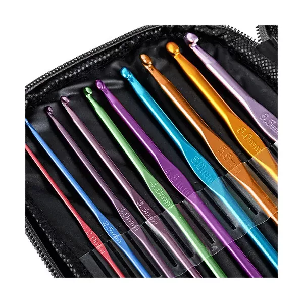 - 12 db horgolótű finom munkához (0,6–1,9 mm)