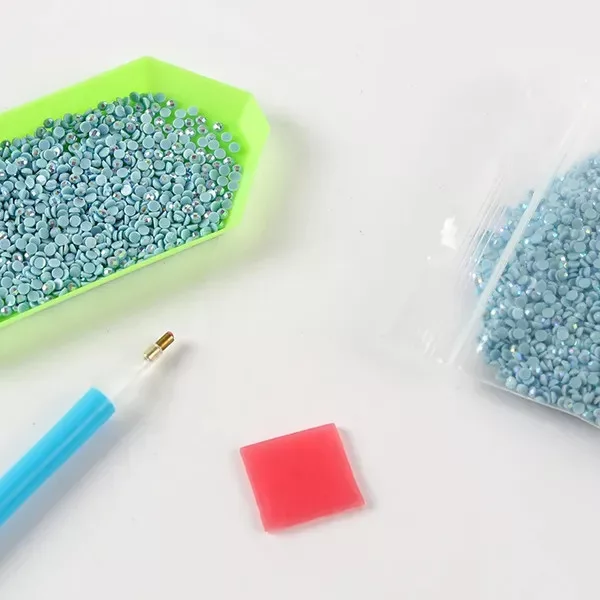 - Színes akril “gyémántok” – élénk színek, véletlenszerűen választott árnyalatok.