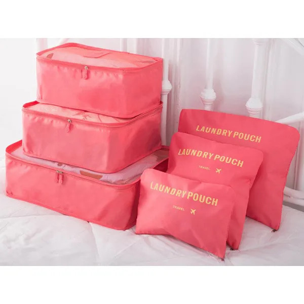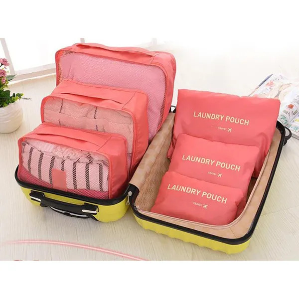 A 6 részes lazac színű utazó rendszerező szett segítségével másodpercek alatt átláthatóvá teheti a bőröndjét, elkülönítheti a tiszta és a szennyes ruhákat, valamint megóvhatja cipőit és kozmetikumait a sérüléstől.