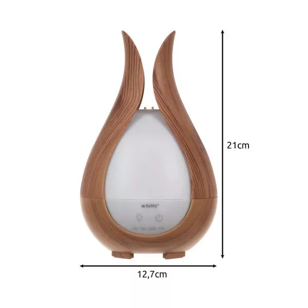 • MŰSZAKI ADATOK - szín: barna árnyalatai, fehér; anyag: ABS, PP, szilikon; hatékonyság: 25 ml/h; működési idő egy tartállyal: 8 óra; szobaméret: 10 - 20 m2; zajszint: 30 - 36 dB; színek száma: 7; teljesítmény: 10 W; kapacitás: 200 ml; tápkábel hossza: 1,5 m; méretek: 21 x 12,7 cm; súly: 0,42 kg; csomagolási súly: 0,59 kg.