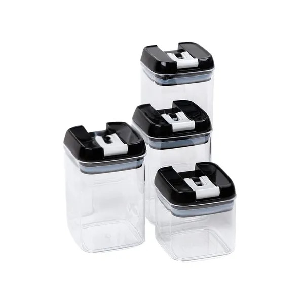 Csökkentsd a konyhai rendetlenséget ezzel a 4 darabos ételtároló doboz készlettel! A strapabíró, élelmiszerbarát műanyagból készült tartók fedelében szilikon tömítés található, amely lég- és vízmentes zárást biztosít, így a tészta, rizs, gabonapelyhek vagy sütemények hosszabb ideig maradnak frissek.