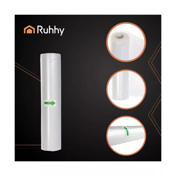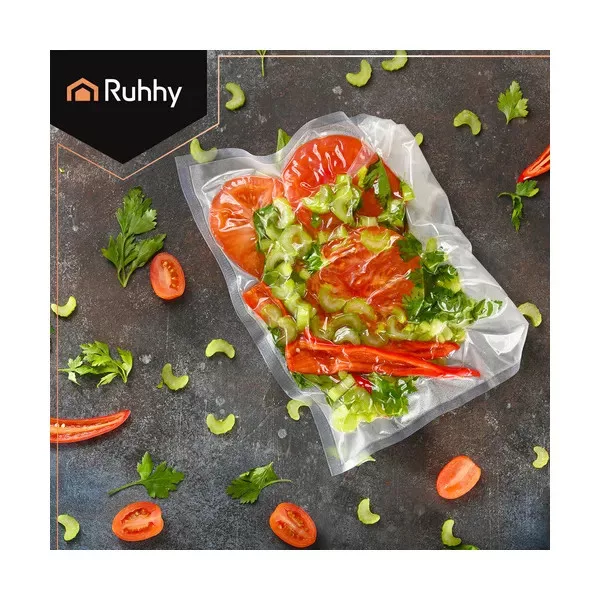A bordázott RUHHY vákuumfólia tekercs ideális megoldás, ha szeretné megőrizni az ételek természetes ízét, illatát és tápanyagait, miközben rendszert és helyet teremt a hűtőben vagy a fagyasztóban.