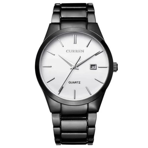 A Curren 8106 férfi karóra modern technológiát és letisztult, figyelemfelkeltő dizájnt egyesít. A fekete, rozsdamentes acél szíj és tok elegáns keretet ad az ezüst számlapnak, melyen dátumablak és díszített segédszámlapok emelik ki az órát a hétköznapi kiegészítők közül. 30 méterig cseppálló, így az eső vagy kézmosás sem jelent gondot, a keményített ásványüveg pedig megóvja a számlapot a karcolásoktól.