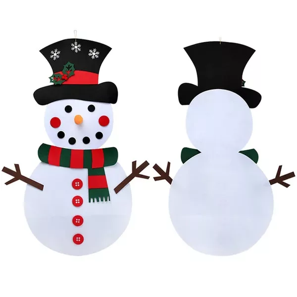 A 100 cm magas, puha filc hóember készlet tökéletes karácsonyi időtöltés gyerekeknek. A figurához 30 darab, tépőzáras dísz tartozik, amelyeket a kicsik tetszés szerint fel- és levehetnek, így fejlesztve finommotoros készségeiket és képzelőerejüket.