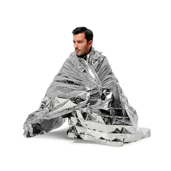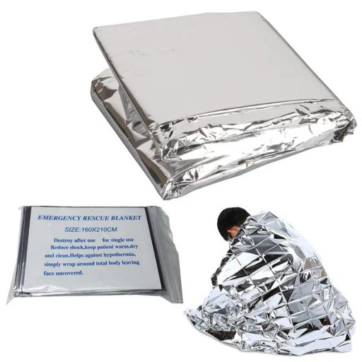 Az ezüstszínű, 160×210 cm-es hővisszaverő mentőtakaró nélkülözhetetlen tartozék elsősegélycsomaghoz, autóhoz, túrázáshoz és sportoláshoz. A metallizált PET-fólia visszaveri a testhő akár 90 %-át, így megakadályozza a kihűlést vagy túlmelegedést, miközben véd az esőtől, széltől és hótól.