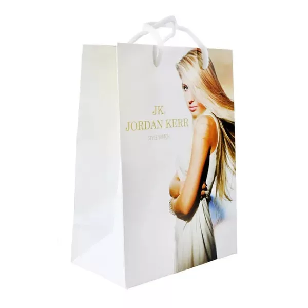 Az elegáns, hófehér Jordan Kerr ajándéktasak ideális választás, ha stílusosan szeretné átadni értékes meglepetését. Minőségi, vastag kartonból készült, így a tartalom biztonságban marad, miközben a fényes felület és az aranyszínű márkajelzés kifinomult megjelenést kölcsönöz.