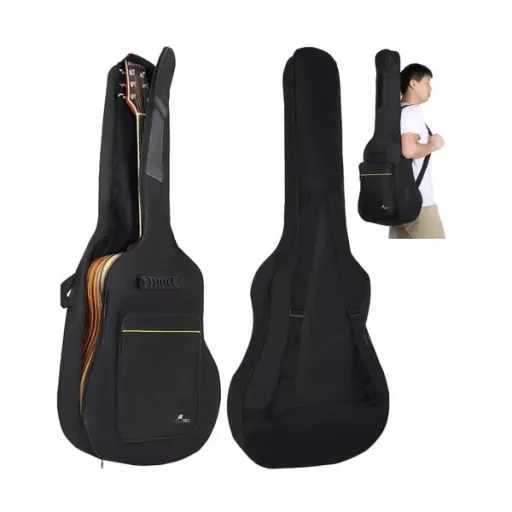 Utazz gondtalanul kedvenc hangszereddel! A könnyű, mégis strapabíró gitártok 41″-ig kompatibilis klasszikus és akusztikus gitárokhoz. Vastag EPE habréteg óvja a hangszert a karcoktól és ütődésektől, a vízlepergető Oxford szövet pedig megállítja a nedvességet.