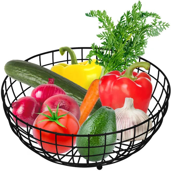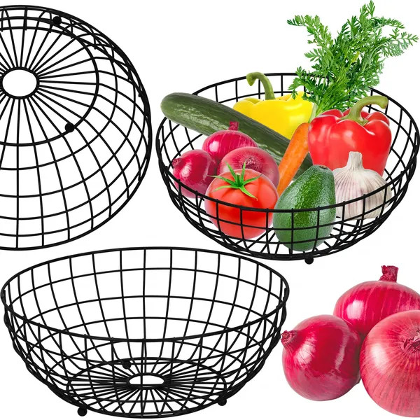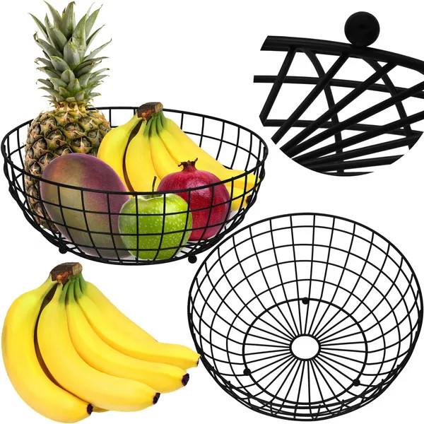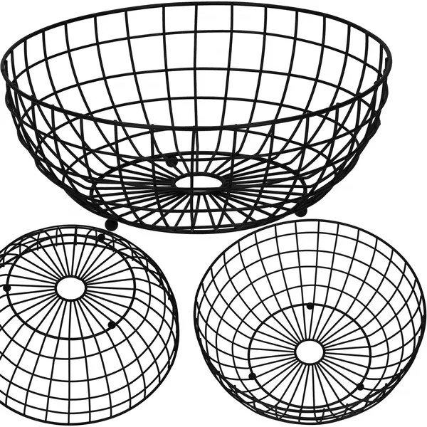 Sokoldalúan használható, letisztult megjelenésű fekete dróthálós kosár, amely tökéletes gyümölcs, pékáru, kozmetikumok vagy kisebb háztartási kellékek rendszerezett tárolására.