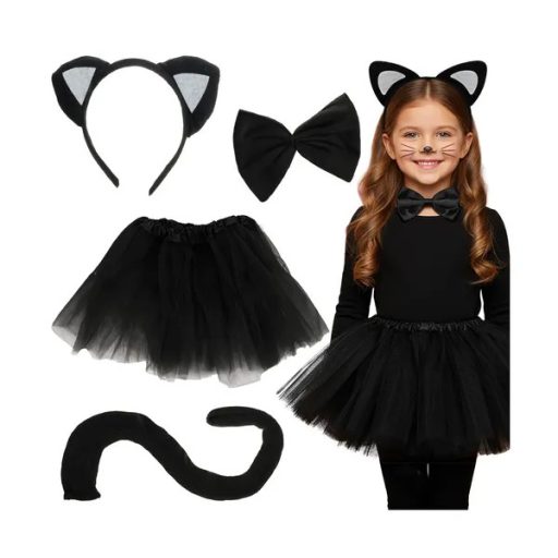 - 4 részes szett: tüll szoknya, macskafül fejpánt, farok és csokornyakkendő.