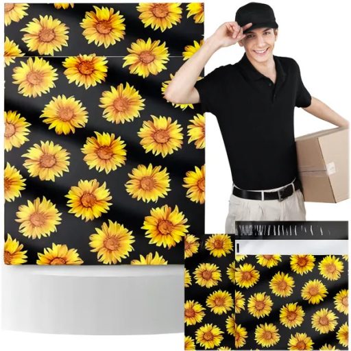Futárfóliatasakjaink megbízható védelmet és professzionális megjelenést biztosítanak küldeményeinek. A 255 × 370 mm-es tasak fekete külsőt és vidám napraforgó mintát kapott, így csomagjai könnyen felismerhetők és esztétikusak lesznek.