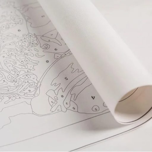 A 30×30 cm-es vászon előre feszítve érkezik egy masszív fenyőfa keretre, így a csomag kibontása után azonnal elkezdődhet az alkotás.