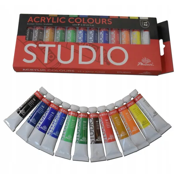- 12×12 ml akrilfesték-szett: élénk, jól keverhető színek