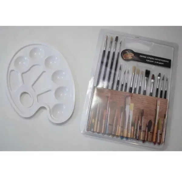 - 15 darabos ecsetkészlet: különböző formák és méretek a részletekhez és a nagy felületekhez