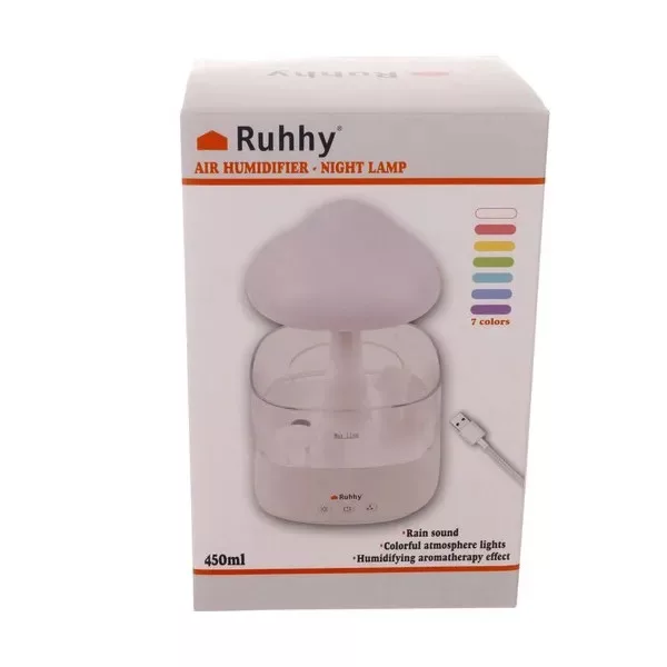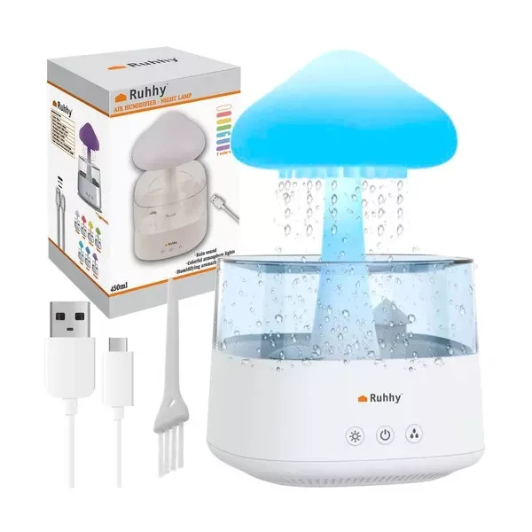 A 450 ml-es, gombakalap formájú LED párásító egyesíti a látványos esőhatást és a diszkrét éjjeli fényt, miközben optimális páratartalmat biztosít otthonában. Elegáns PP műanyag burkolata, átlátszó víztartálya és színváltó világítása modern kiegészítővé teszi a háló-, nappali vagy gyerekszobában.