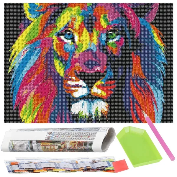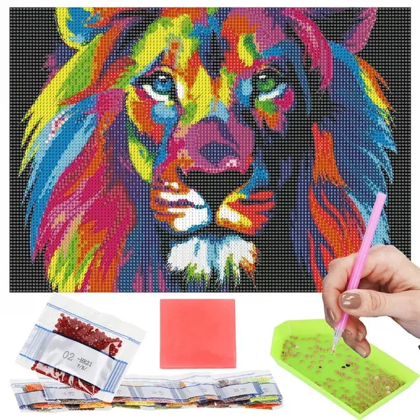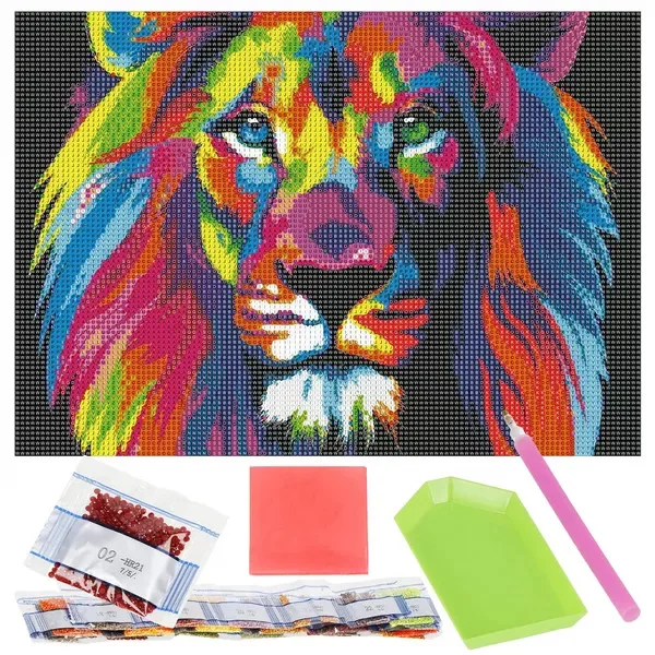 Teljes gyémántfestő csomag színes oroszlán mintával, amely azonnal kreatív kikapcsolódást kínál és ragyogó dekorációt varázsol otthonodba. A számozott vászon, a precíz eszközök és a 23 élénk színű akril gyémánt biztosítja, hogy a kész kép profi hatást keltsen.