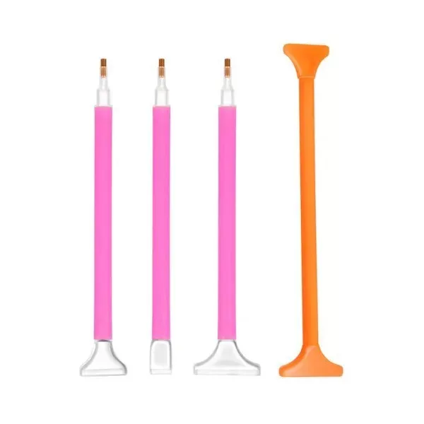 - Négy ergonomikus applicátor toll különböző hegyekkel a gyors egyszemes vagy többsoros felvitelhez.