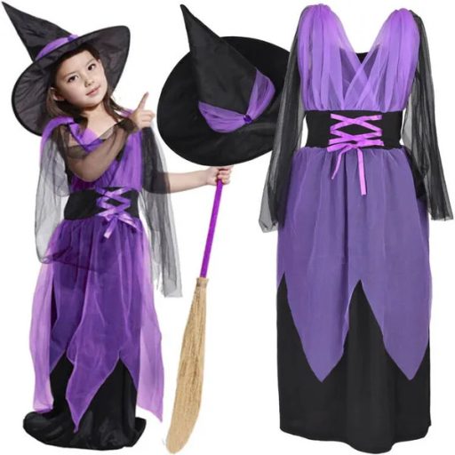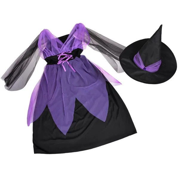 A boszorkányos beöltözés minden gyerek számára felhőtlen szórakozás és a képzelet szárnyalása. Ez a fekete-lila jelmezszett mindent tartalmaz, ami az azonnali varázslathoz kell.
