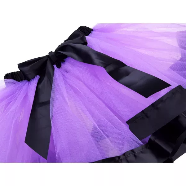 - Fodros, lila-fekete szoknya rugalmas derékkal – hossz: 28 cm, derék: 44–80 cm