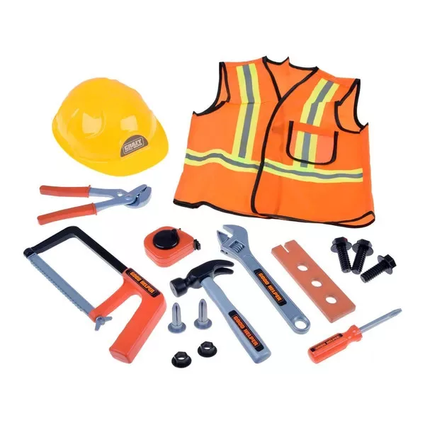 Lepd meg gyermekedet ezzel a valósághű építőmunkás jelmezzel, amelyben egy fényvisszaverő sávokkal ellátott, erős vászonból készült mellény, egy sárga műanyag sisak és több mint egy tucat szerszám kapott helyet. A játék közben a kicsik megtapasztalhatják, milyen igazi szakembernek lenni, miközben fejlesztik finommotorikus képességeiket és problémamegoldó gondolkodásukat.