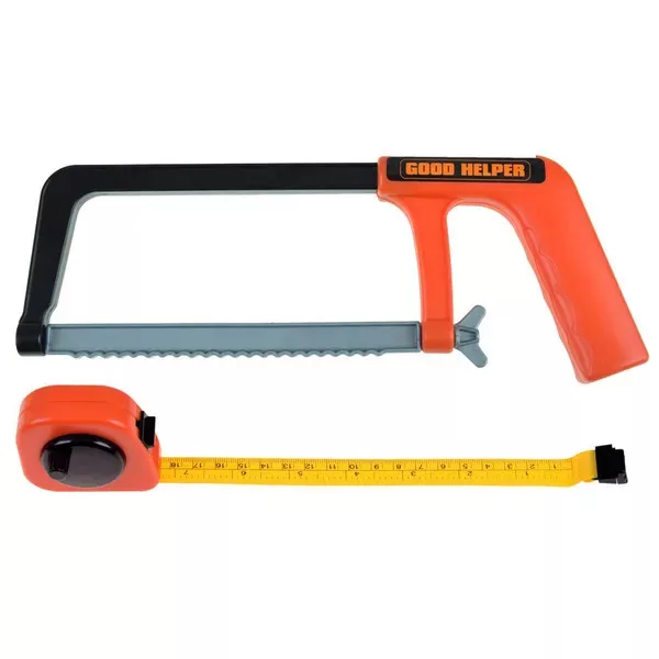 - Tartalma: mellény, sisak, mérőszalag, 3 db anya, 3 db csavar, deszka, kalapács, villáskulcs, csillagcsavarhúzó, fűrész, univerzális kulcs, 2 db szög.