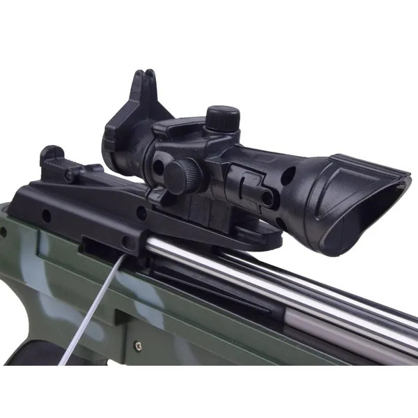 A számszeríj lézeres irányzékkal rendelkezik, amely megkönnyíti a cél eltalálását. A játék előnye a kényelmes lábtámasz is, amely lehetővé teszi a gumiszalag hatékony feszítését. Az egész nagyon hatékonyan, kiváló minőségű anyagokból készült. A számszeríj biztonsági zárral is rendelkezik, csak a kar oldalát kell OFF állásba helyezni. A biztonságos nyilak tapadókoronggal végződnek. A játék segítségével a gyermek gyakorolhatja a látásérzéket, a pontosságot és a türelmet.