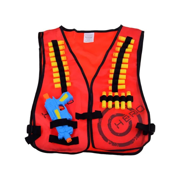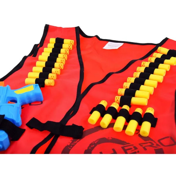 A kis harcosok kedvence lesz ez a komplett harci készlet, amely strapabíró mellényt, 25 darab habszivacs lövedéket és egy könnyű, kézre álló pisztolyt tartalmaz. A mellénybe épített tárolózsebeknek köszönhetően a lőszer mindig elérhető, így a játék sosem szakad meg.